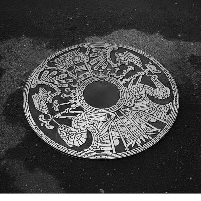 Six casted manhole covers in Zürich feature allegorical designs that narrate the dynamics behind the six layers of digital infrastructure – symbolic gates to a hidden world.6 LOCATIONS
